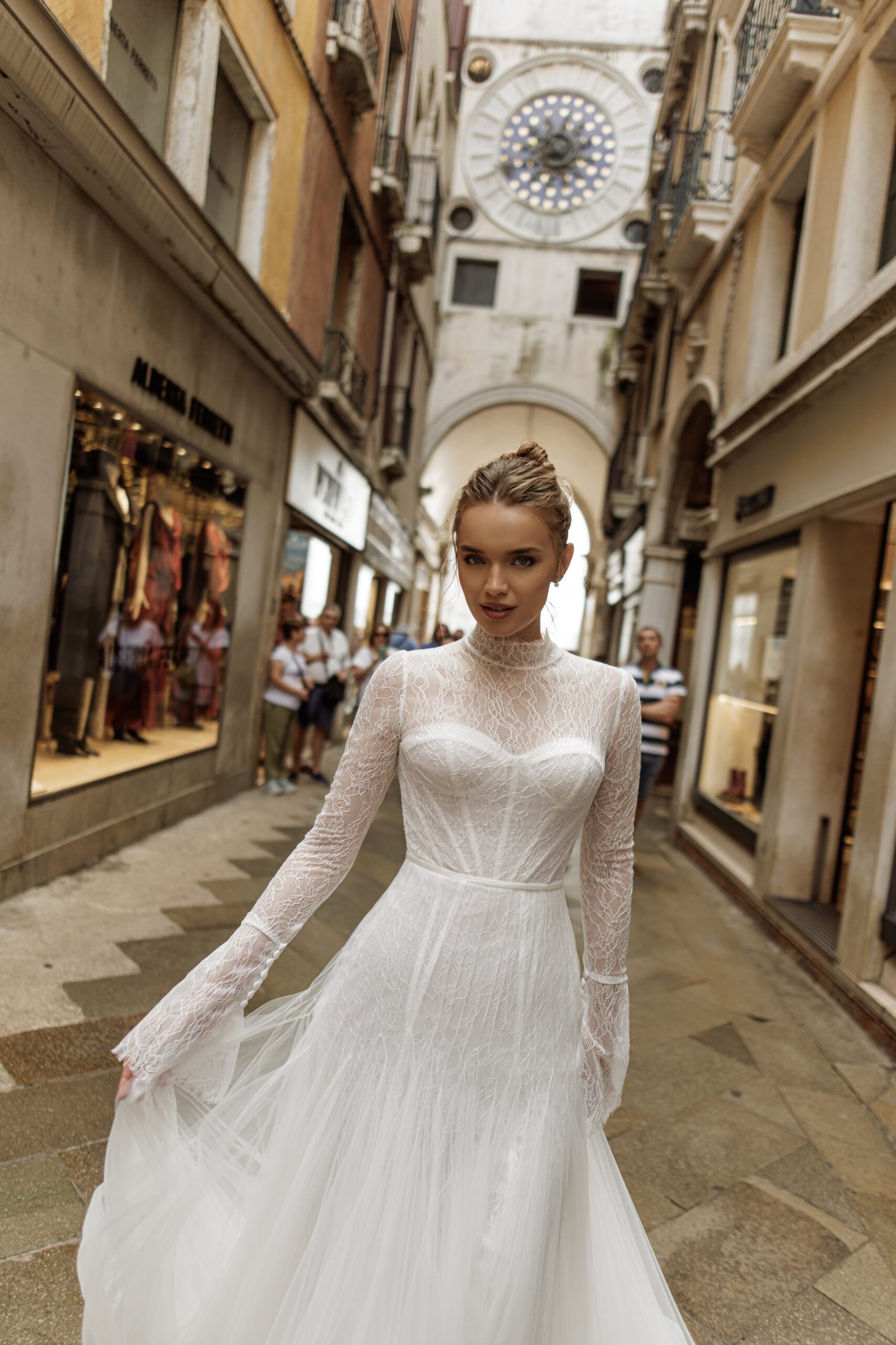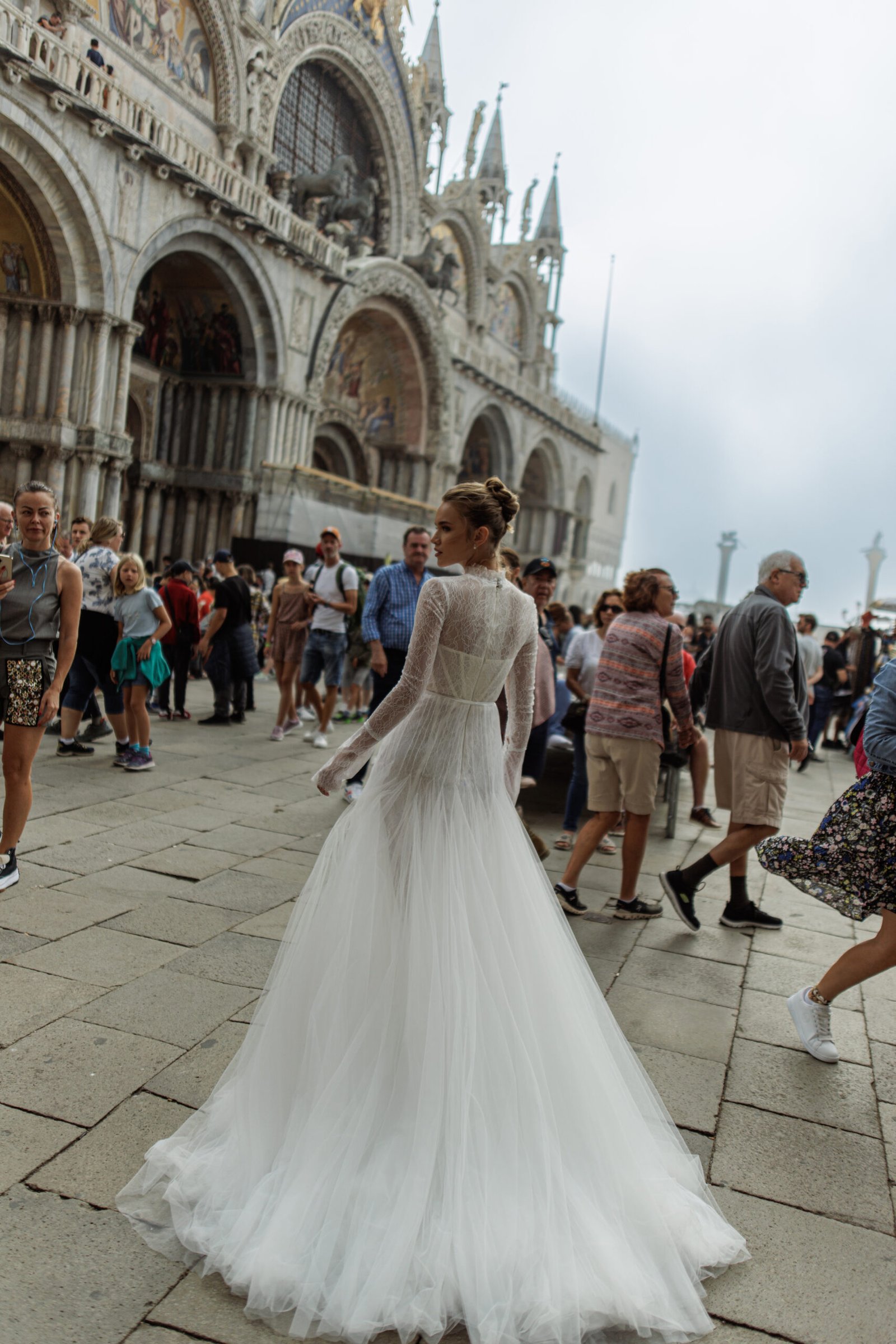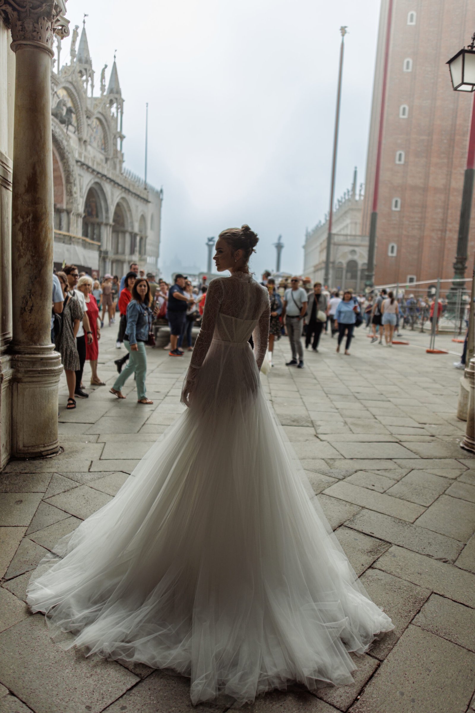 A captivating creation that exudes modern elegance and timeless allure. This design features a beautifully structured silhouette, enhanced by exquisite detailing and luxurious textures. Every element — from the delicate neckline to the intricate embellishments — is thoughtfully crafted to highlight femininity and sophistication, making it a perfect choice for the bride who seeks both grace and glamour.