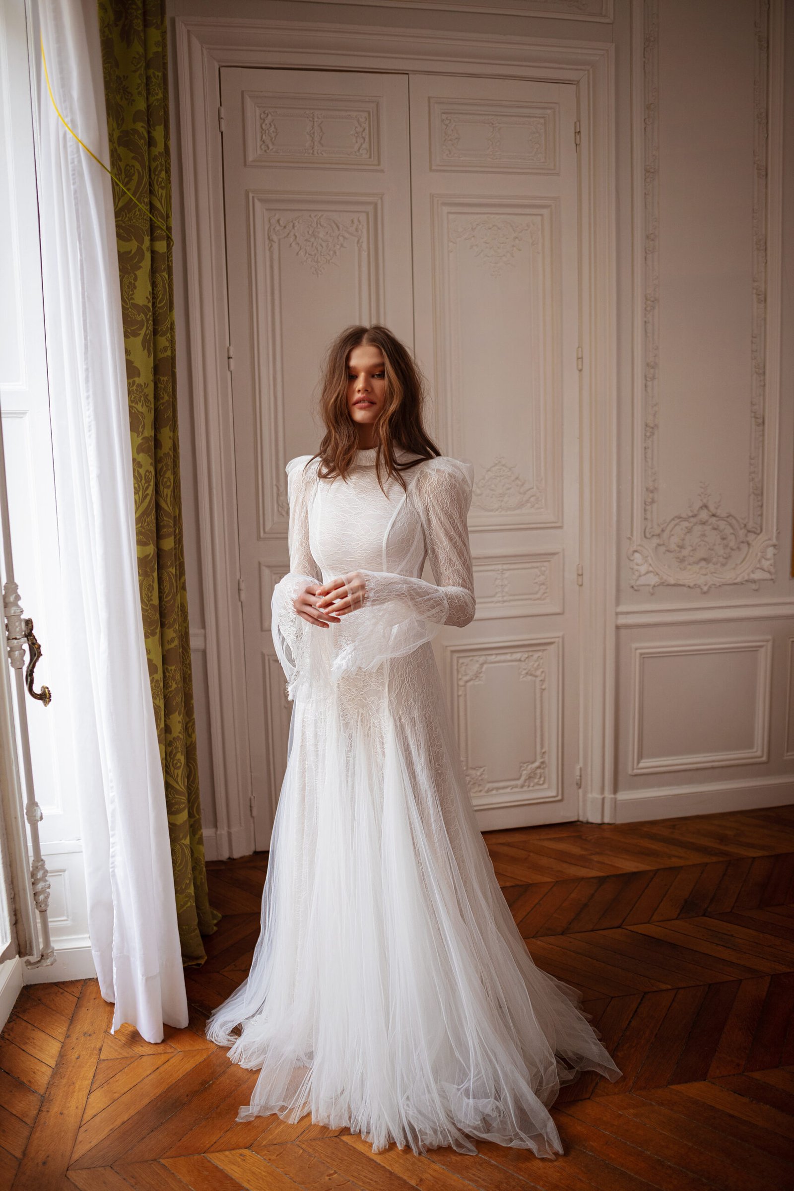 A captivating creation that exudes modern elegance and timeless allure. This design features a beautifully structured silhouette, enhanced by exquisite detailing and luxurious textures. Every element — from the delicate neckline to the intricate embellishments — is thoughtfully crafted to highlight femininity and sophistication, making it a perfect choice for the bride who seeks both grace and glamour.