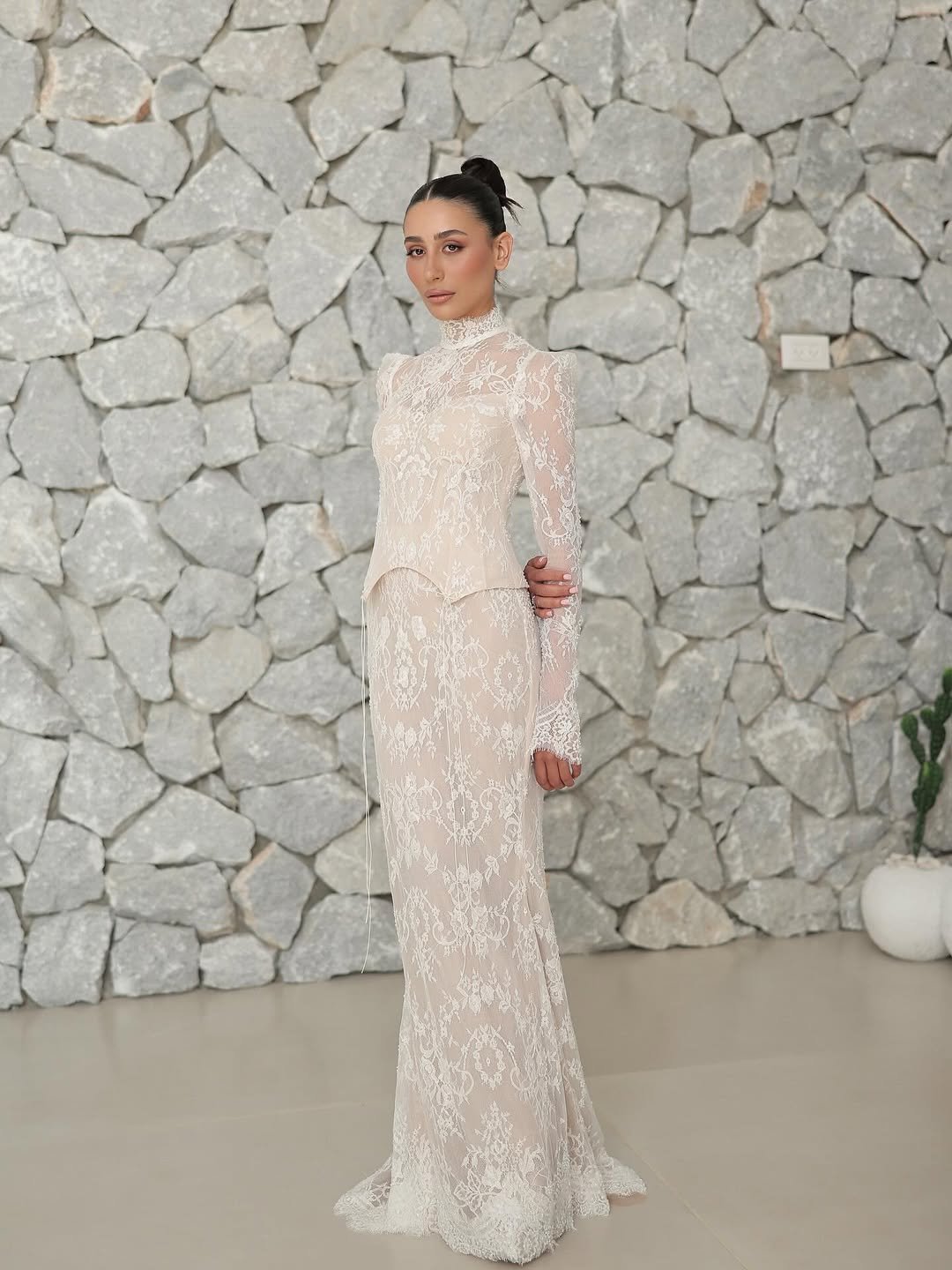 From the first fitting, Mia knew she had found something extraordinary. The gown’s delicate lacework, flattering silhouette, and graceful movement made her feel effortlessly beautiful. Every detail reflected her personality — romantic, confident, and timeless. On her wedding day, she felt completely herself, glowing with happiness and surrounded by love.