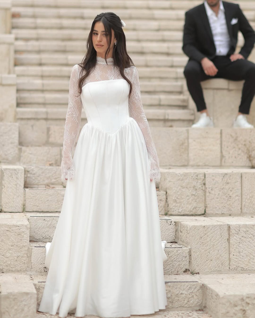 ‘When Emma began her wedding dress search, she envisioned something timeless yet unique. After exploring several boutiques, she discovered a gown that captured her heart — a romantic design adorned with lace details and a flowing skirt that moved effortlessly. The moment she put it on, she knew it was the one. “It felt like it was made just for me,” she shares, radiating joy as she recalls her special day.’